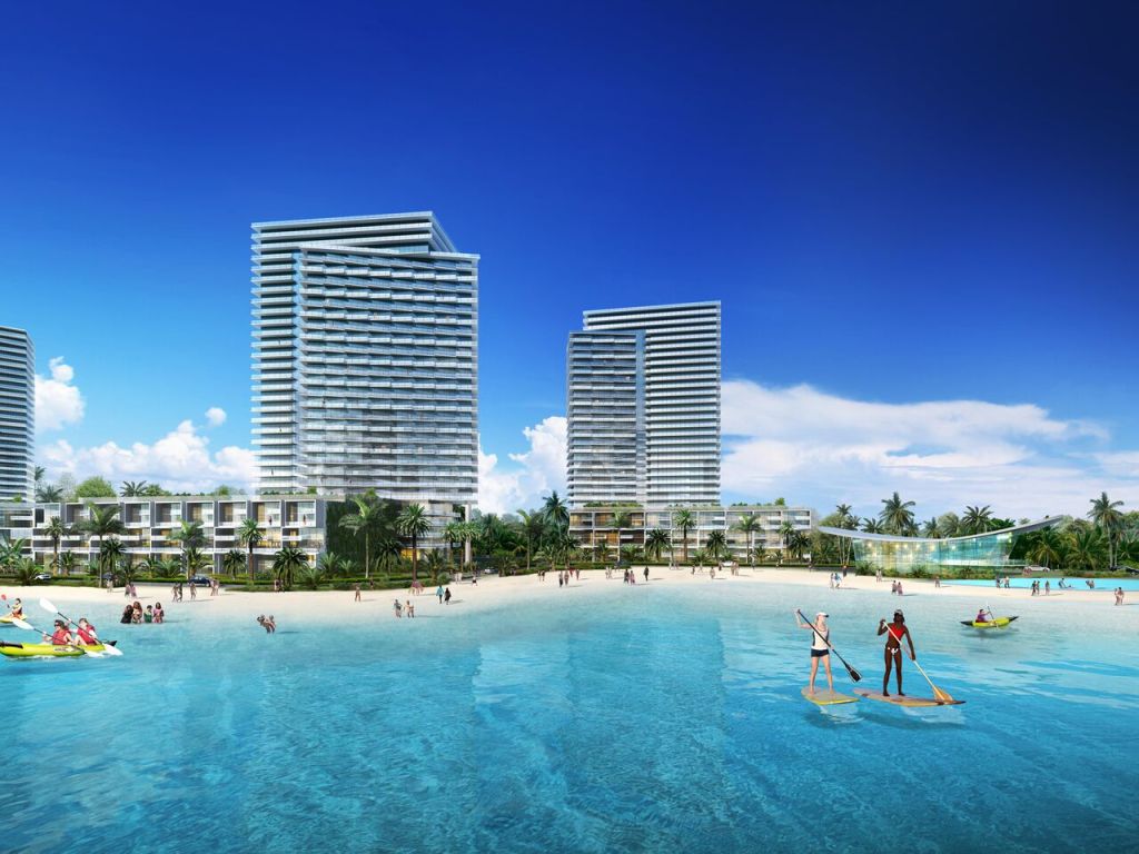 Developers of the SoLe Mia community are hoping to woo residents with the first-ever “crystal” lagoons in South Florida. Two 7- to 10-acre manmade lagoons of fresh water will be the focal point of the project’s luxurious amenities. Project planners says they will provide a safe and protected environment for residents and visitors to enjoy aquatic activities such as kayaking, swimming, paddleboarding, and sailing. The property is on the edge of Biscayne Bay, across a causeway from the beach.
