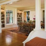 Decorative posts frame the dining room, which flows into the kitchen, making for an open plan that’s clearly defined.