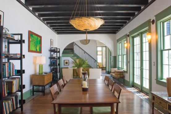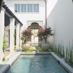 Resting on a footprint measuring just 36 feet by 80 feet, the townhouse pulls off the seemingly impossible with a zero lot-line configuration that reallocates precious yard space in an introverted way. All of the home’s public rooms open to an oasis in the heart of the plan, but unlike your typical courtyard, this one isn’t just a doughnut hole punched in the middle of the building. It’s a delicately layered sequence of Spanish-style covered loggias, galleries, and patios, intertwined to create keyhole views.