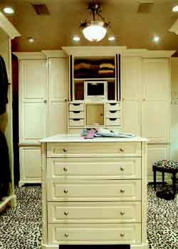 SPECIAL FOCUS—Dressing Room REED-AND-RIBBON DETAILING in the dressing room is repeated in the adjoining master bath, giving both of the rooms a level of fit and finish that subtly proclaims luxury.
