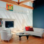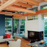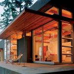 The 2,512-square-foot house generally conveys an unassuming impression—it’s designed to serve as a background for the site’s natural beauty. But in addition to the glassed-in circulation tower, it does contain another attention-drawing element: a cantilevered ceiling that floats over the living and dining room patio. “It was important to me to have the extension from interior to exterior be very dramatic,” says Swatt. “I wanted it to be at a human level, but I still wanted to get the ceiling height inside.” He solved this dilemma by leaving the 13 ½-foot interior ceilings in place and dropping a level of exposed structural beams down to a height of 10 feet. Those beams continue outside to become part of the cantilever. As with the rest of the comprehensive design strategy, this maneuver enhances the home’s relationship to its enticing, unspoiled site.