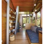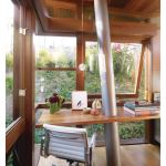Elements such as a butterfly roof, clerestory windows, mahogany-framed windows, and Clear Heart cedar siding were inspired by a house that Kempel had designed for the couple years earlier—a house that never got built. “The tree house was one part of the dream,” says Kempel. “The other part was getting to realize the unbuilt home through building the tree house.”