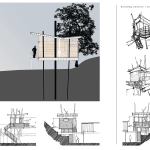 The structure is inspired by the client’s childhood love of tree houses and draws inspiration from tree houses past. But instead of being supported by a tree, this tree house hews close to one. It hovers over an Aleppo pine that fell when it was young and survived. The tree’s first 12 feet of trunk grew horizontally before it resumed growing vertically up the hillside (to make the point, the tree trunk can be seen through a small window in the tree house floor).