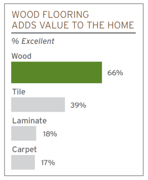 Today, hardwood flooring and hardwood look-alike products are on top once again. When homeowners were asked what kind of flooring they would choose for their dream home, 66% said hardwood floors, according to a recent survey conducted by the National Wood Flooring Association (NWFA). Sixty-eight percent of owners said wood flooring is attractive, compared to 46% of the next flooring type, tile. Besides its attractiveness, the survey concludes wood flooring also adds value to a home (66%), is hypoallergenic (34%), and is environmentally responsible (24%).