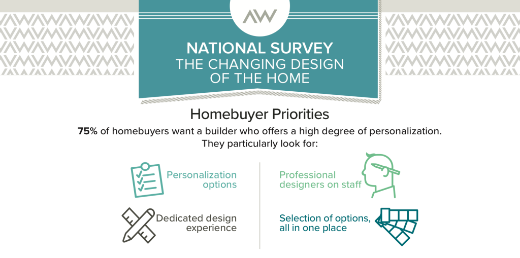The company’s 2018 Ashton Woods National Homebuyer Survey determined that personalized design options were a leading consideration for three-fourths of buyers when selecting a builder, and that buyers’ existing kitchens, master bathrooms, and backyards were the top spaces they seek to upgrade.