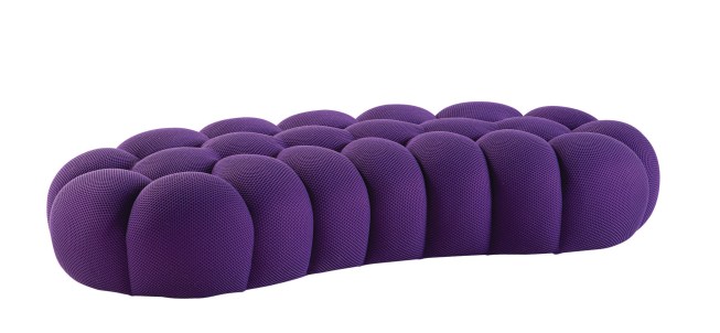 Adding boldness and brightness, Ultra Violet regalizes lounge seaters, such as the padded BUBBLE ottoman designed by Sacha Lakic for Roche Bobois. This fabric contains a black jersey that maintains shape well, with a honeycomb wool attached on top, which adds softness. www.roche-bobois.com