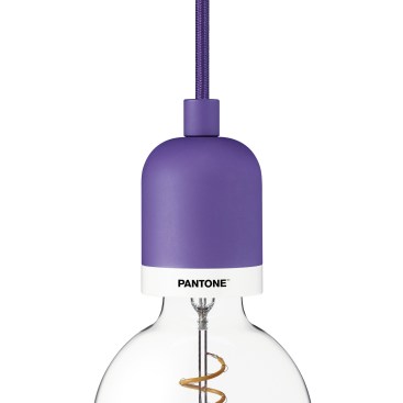 The Deneb Pendant by Light Color Live features a modern sculptural shape in a funky color twist. The powder-coated metal ceiling rosette features the Pantone logo, and a 10-foot fabric covered cable. www.lightcolorlive.com
