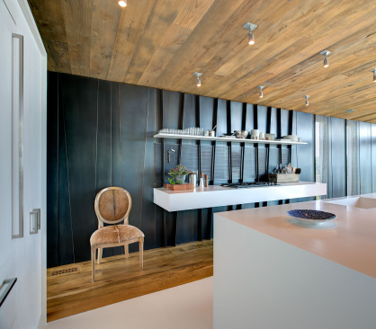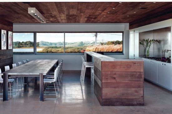 Inside, the exterior’s subtly abstracted vernacular gives way to a modern composition that mixes natural, local materials with select bits of stainless steel.