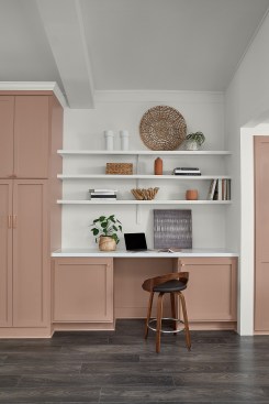 “Redend Point’s subtle pink undertones make it easy to incorporate into any space. It delivers an enveloping warmth that instantly makes you feel at home,” continues Wadden. “Build on its earthiness by utilizing the hue alongside natural-looking textiles and wood accents or create a desert oasis by layering terracotta shades and clay materials.”