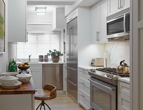 As cities go, New York has its share of restrictions that can turn good ideas into dead ends. Homeowners learn to renovate within limits, especially those in prewar apartment towers such as the Ardsley, a grand Art Deco building on the Upper West Side designed by Emery Roth. When a resident hired local firm Design Development NYC to gut her 1,600-square-foot condo, the kitchen’s tiny footprint was not allowed to change. “Wet areas are restricted to their existing wet profiles,” says Chip Brian, co-founder of the design/build firm. “You cannot relocate a kitchen or make it larger.”
