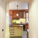 But this kitchen redo posed even more design challenges than most remodels. There was the porcelain sink and drainboard that the homeowners had brought home from Britain. They were in love. It had to stay, but moving the walls wasn’t an option. There was the kitchen window, set awkwardly, near a corner, but changing the home’s exterior wasn’t an option, either. The family of five—all active cooks—wanted to work in the kitchen together, with a fridge set within the traditional work triangle. However, there wasn’t much wall space to work with in the kitchen of this two-story, 1914 Craftsman house.