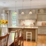For her own residence, interior designer Gretchen Evans hoped to blend the charm of an older house and the conveniences of a new one. Judging from the kitchen and bath, she and the team from Stuart Silk Architects (comprised of Stuart Silk, Aaron Mollick, and David King) hit the mark perfectly. They separated the kitchen and dining area from the living room with cased openings and pillars, which define the space without closing it off. For the kitchen cabinets, Evans chose a putty-gray paint shade more typically found in bedrooms or living spaces. “I wanted it to feel more ‘not-so-kitchen,’” she says.