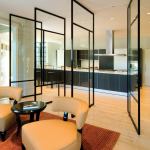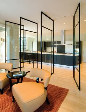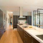 The big challenge of this project was to keep the kitchen open to the family room while giving the clients the means to control noise between the two spaces. The judges liked Gurney’s solution: floor-to-ceiling glass doors that pivot 360 degrees. The custom black-steel framed doors swing easily on ball-bearing hardware and give the owners unlimited ways to arrange the doors.
