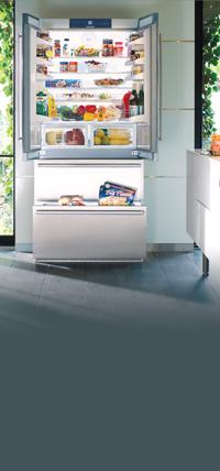 Available in freestanding, stainless, and fully integrated models, the 36-inch refrigerator features LED lights, an Energy Star rating, a water filter, double freezer drawers, and a dual refrigeration system. Liebherr. 866.543.2437. www.liebherr-appliances.com.