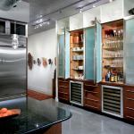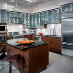Although the kitchen captures some rays streaming in from a two-story window wall in the living room, its siting near the back of the apartment meant some artificial illumination would be required. To fill in where natural light can’t, McKinney speced a C-shaped track with low-voltage lamps, low pendants over the island, and soft undercabinet lights. “An even amount of illumination lets you go with lower wattage,” she says. And because the fixtures are independently controlled and dimmable, “you save energy and fill the space with light only where you need it.”