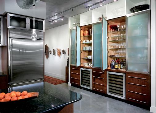 resources: dishwasher and range: Jenn-Air; plumbing fixtures: Dornbracht Americas; refrigerator: GE Consumer & Industrial (Monogram); tile: InterfaceTile, Waterworks