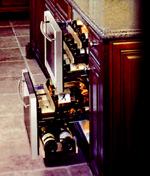 The two-drawer, 43-bottle Wine Captain features individually temperature-controlled top and bottom drawers. When opened, the wine racks automatically cascade outward; the lower drawer has a removable three-bottle wine caddy. It is available framed in either black glass or stainless steel. U-Line. 414.354.0300. www.u-line.com.Circle 166