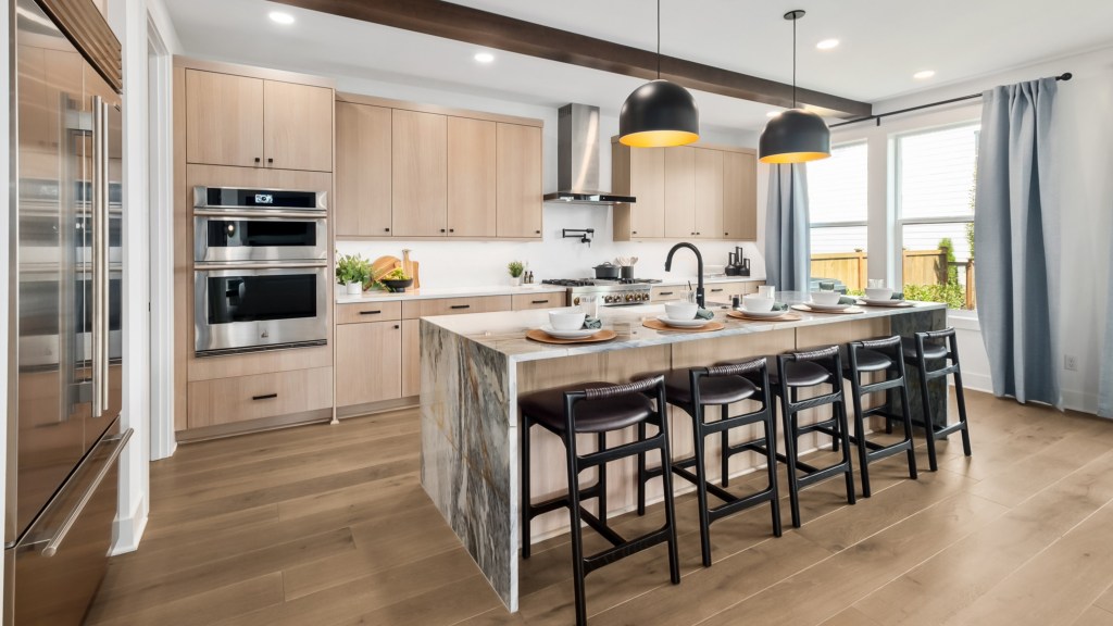 “Open-plan kitchens offer the flexibility that allows for more usable space and enable a wider variety of floor plans with diverse appliance placements, varied storage, and pantry sizes, and the choice between small or large islands or peninsulas,” says Chris Yuko, managing director of development at Marquette Companies.