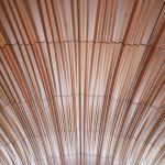 For the past five or so years, the architects have been experimenting with CNC milling, fascinated by the customization that digital fabrication allows. Here, the shop-made pieces allude to the vegetation and culture. The island’s basket-weaving history inspired the entry pavilion, which re-enacts the tradition of presenting guests with a gift. The marine plywood inverted basket was assembled on site from a kit of parts fabricated in Los Angeles.