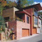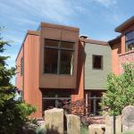 A mix of salvaged bricks and cedar siding clads both the guest h…