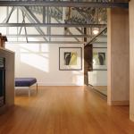 In keeping with the loft aesthetic, architect Steven Spurlock kept only the barest essential structure. Knocking out portions of the original dividing wall between units, he allowed the kitchen, living, and dining areas to span one large, open space, which he unified with new bamboo flooring.