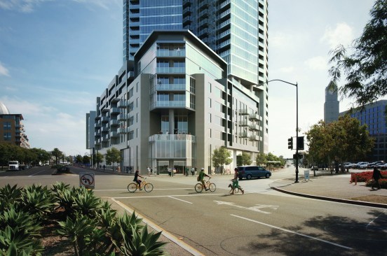 Inspired by New York’s High Line Park, Park 12 aims to become a walkable, urban village, anchored by an expansive semicircular public plaza at 10th and Park, where ground-level retail and five restaurants will line the public space. A dramatic cascading staircase makes a bold first impression at property’s Imperial Avenue and Park Plaza entrance. The development will also offer direct access to Petco Park for San Diego Padres baseball games and other special events.