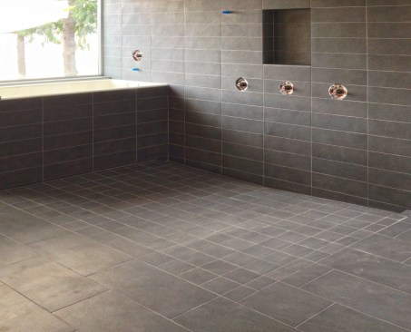 There are several reasons to lose the shower curb. A curbless shower means cleaner lines in the bathroom: there’s less visual clutter, there is greater ease of use with the shower, fewer nooks and crannies to clean, and the shower becomes highly accessible. The methods for achieving this vary and today’s post covers just one technique, but it’s the one we like best and the one we’re designing and building for our current projects.