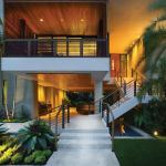Ample windows may provide lots of natural light during the day, but they can be cold when the sun goes down, “turning them into black holes at night,” Smith observes. He cites homes with waterfront views as posing special challenges where that’s concerned. But in this snug lot, that visual chill was avoided by making sure the landscaping was well-illuminated.