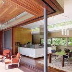 Architect Cass Calder Smith confesses surprise when he reports that there have been no complaints from the neighbors about this very modern house, even though it’s located in an established neighborhood on a street lined with traditional houses. Built on a corner lot with a breezeway entry that can be seen from the street, the house isn’t exactly hidden by hedgerows. But it’s that very visibility that makes the house “a tiny bit public, less introverted,” says Smith, and, in turn, more warm and approachable. “I don’t like to walk straight to a façade with a front door,” he adds. A better alternative, Smith says, are side entries, which are able to create what he refers to as “psychological warmth.”