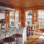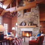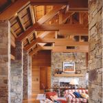 “In designing a house like this, I’ll start with the principal room and kind of work outward from there,” says architect Stuart Silk. Here, in a home designed for parties, that focus centered on the great room. Given the large scale of the room, Silk sized its constituent elements accordingly. The chimneys carry their full width all the way to the ridge. Each stone column is wide enough in the north-south direction to give a sense of heft but narrow along its east-west face, so as not to block the views. The trusses—fabricated from glue-laminated beams and clad, like most of the interior, in clear Douglas fir—are stout enough to do the job, but simple enough to avoid distraction. “I wanted to do a truss that didn’t look like every other truss,” says Silk, who characterizes the resulting design, and the fir purlin-and-board roof structure it supports, as “semi Japanese, semi Northwest.” Doors and windows are proportionally oversized, with a head height of 8 feet and windowsills only inches from the floor. “We’re doing a kind of Monticello deal with the windows,” Silk points out, referring to the triple-hung windows Thomas Jefferson designed for his own dining room, which open high enough to serve as doors to an adjacent veranda. No one will climb through these windows, but their scale suits that of both the building and the scenery outside.