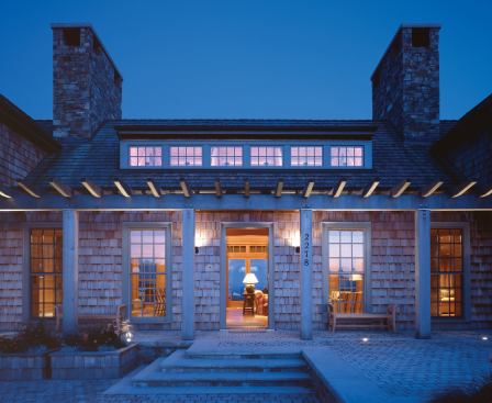 Leaning on the stone sill of one of those chimney openings and looking through the intricate pattern of roof framing, builder Donald Heggenes allows that the great room posed the greatest challenge in building this house. Just working out the framing so that all the purlin bays ended up equal represented a significant effort. “I had to lay it out from the top down to make all the spacing line up,” he says (see “Truss Me,” below). But having been involved with building houses on this island for most of his 37 years, Heggenes takes for granted certain other factors that set this project apart. Because the site is essentially a sand dune, Heggenes had to build the house to float. He over-dug the foundation hole by 2 feet, then compacted fill in 6-inch lifts alternated with layers of reinforcing fabric. Soil conditions also influenced, of all things, window selection. On this exposed site, winds are often strong enough to blast the house with beach sand. “After 7 or 8 years, the glass will actually get etched,” explains Heggenes, who installed windows and doors by Kolbe & Kolbe Millwork, which offers a special glass that resists etching.