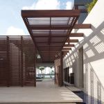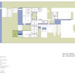 “Stone walls create a sense of permanence, luxury, and timeless modernity,” the architecture firm says. “As these walls direct you through the project, they dissolve gently into the ever-present gardens. As a result of this layering of materials, both porous and opaque, the light is controlled by the architecture, thereby delivering orchestrated compositions of vivid light and shadow patterns.”