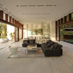 Designed by Rene Gonzalez Architect for developers Felix Cohen and Shlomi Alexander, the sprawling home was conceived as a series of pavilions connected by outdoor spaces, lush gardens, courtyards, water elements, and shaded pathways.