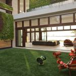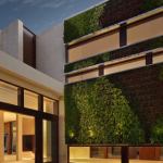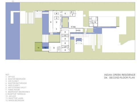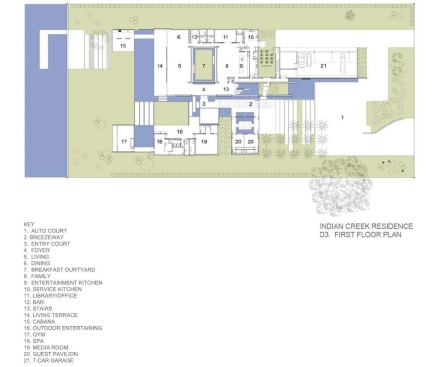 Sited on almost two acres, the home consists of 10 bedrooms, 14 bathrooms, and four half baths. It also includes ample outdoor spaces, including a 1,475-square-foot “green wall” that is planted with more than 17,000 tropical salt-tolerant plants in six wall sections.