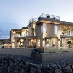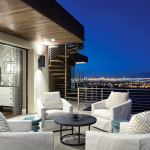 There’s also a second-floor master in addition to three other bedrooms: two upstairs in the main house and one in the attached carriage suite. Quieter elements that are no less impressive include a fully equipped yoga room, a soothing water feature in the main entry, and a rooftop terrace with breathtaking views.