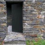 Leaving the surrounding grade unchanged, the architects at Burr and McCallum specified a 4-foot-high wall of indigenous Goshen stone to wrap the perimeter of the pool. On the uphill side, the stone wall rises to 8 feet, creating roof supports for a covered pavilion with ipe decking, which includes storage, a bathroom, and a small changing area. A solid door in the stone wall completes the pool enclosure requirements, and the stacked stone matches other garden walls on the property. Board-formed concrete and painted clapboards on the back side of the structure were cost savers.