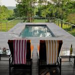 A steep slope can be your friend when you’re trying to avoid putting in an ugly pool fence. This clever structure provides a shaded spot for poolside lounging on one side and tennis watching on the other—and it’s infinitely prettier than your standard, 4-foot-tall pool enclosure.