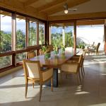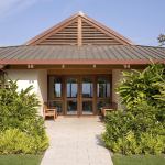 Despite the tropical climate, A/C is optional in these lanai-style homes, and sometimes is not needed. Large window openings and ceiling fans promote natural cross-ventilation, and bedroom louvers channel rising hot air into a central roof gable, where it is exhausted through motor-operated gable end windows. Solar panels tucked discreetly onto storage room roofs provide domestic hot water, and clerestory windows channel in plenty of natural light, further reducing electrical consumption.