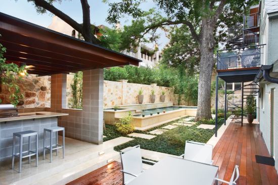 There’s a lot of living designed into this urban backyard in Austin, Texas. Though the lot is only 5,820 square feet, its backyard provides everything the owners need for their social outdoor lifestyle.