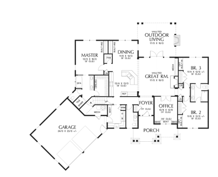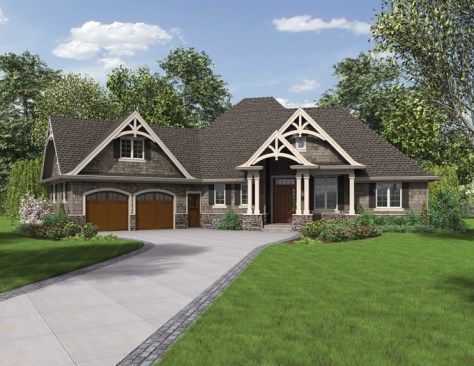 This new plan has the look that sells, with decorative trusses, stone accents, and an angled garage. The office inside opens not to the foyer but to the great room, allowing for greater interaction between this space and the main gathering room. Handy built-ins add an impressive level of detail through the home. See more images and details.