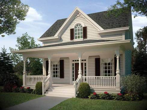 Measuring just 28′ x 34′, this plan provides outstanding curb appeal for a compact lot. The completely-open layout on the first floor offers freedom to move around from the kitchen (where a snack bar offers a great place to grab quick meals) to the living/dining space. A second bedroom suite upstairs adds a lot of flexibility: your buyers can use it as a home office, reserve it for visitors, or perhaps make it a nursery in the future. See more images, information, and the floor plan.