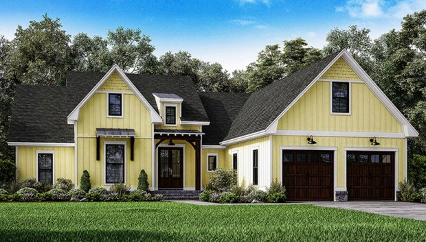 This exclusive plan takes the modern farmhouse form and gives it a fresh, soft look. The one-story layout makes it easy to age in place and grants each bedroom plenty of space and a walk-in closet. In the middle of the home, the living room opens out to a rear porch and then a screened porch with an outdoor kitchen for fun grilling parties. Everyone can gather around the kitchen’s island, where an eating bar sits just steps away from the open dining room. Don’t miss the master suite’s spa-like bathroom and huge closet. See more images, information, and the floor plans.