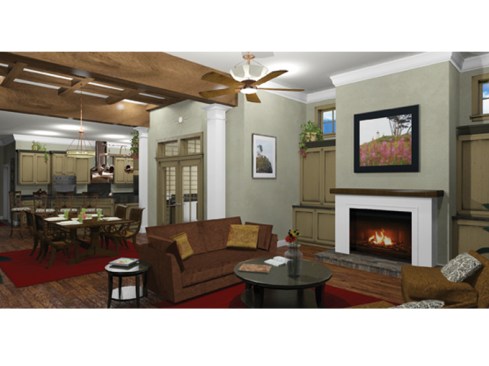 area (which boasts a coffered ceiling) for an airy feel. Columns highlight the