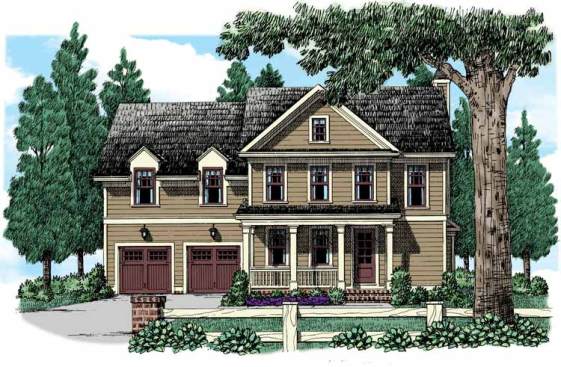 walk-in closet in this two-story design. The master suite also includes a