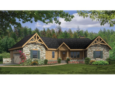 exterior. Inside, the great room is large enough for any gathering; a fireplace
