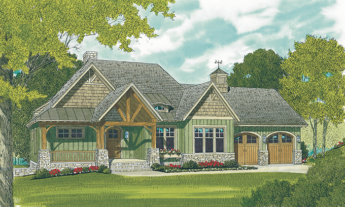 inviting Craftsman plan is ideal for a sloping lot. On the walkout lower level,