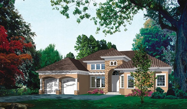 stucco and stone exterior is bound to make this Tuscan plan one of the focal