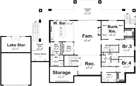 “This home was designed to be nestled beside a lake, where every angle offers a stunning view of the water,” says Jason Diederich, founder of Advanced House Plans. “The fusion of rustic mountain lodge charm and clean bold modern lines gave this house the ability to both blend in and stand out.”
