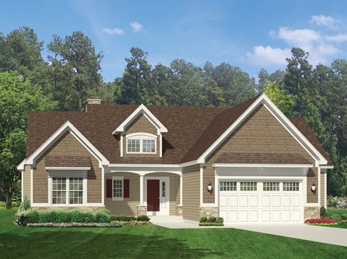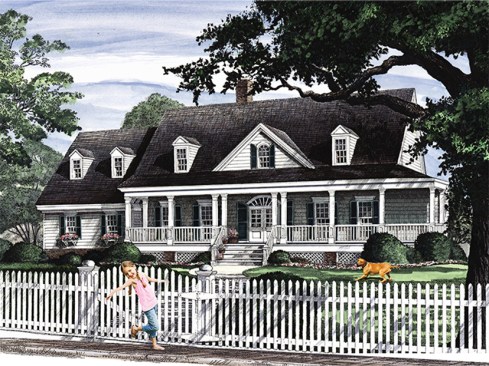 While the outside of this home projects old-fashioned country charm, the inside is perfectly attuned to the needs of a modern family. The master suite is easy to reach on this level, with a versatile bedroom suite nearby that would make a great nursery, guest suite, or home office. In the open gathering area, columns provide a bit of visual definition between the great room and the island kitchen (don’t miss the handy veggie-rinsing sink here). A deck invites outdoor living in back, while the front porch provides the perfect place for enjoying a glass of iced tea and waving hello to the neighbors on a sunny day. Two more bedrooms upstairs share a bathroom that boasts two sinks. Over the garage, a bonus space offers room to expand. See more images, information, and the floor plan.