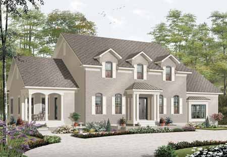 This two-story plan, a consumer favorite, gives the look and feel of grand-style living without excessive square footage. The open layout inside creates great flow and helps keep costs down with few interior walls. The master suite has another fireplace and window seat and adjoins a luxurious master bath with separate tub and shower. Adding flexibility, an optional separate apartment over the garage includes its own living room, kitchen, and bedroom. For more images, information, and the floor plan, click here.
